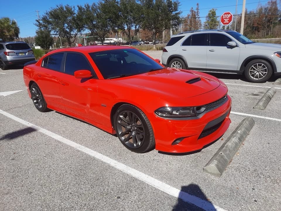 This is a 2023 Dodge Charger R/T. The Dodge Charger is a muscle car that was originally made between 1966 and 1978. The second production run lasted between 1981 and 1987 (model years between 1982 and 1987). Production started up again in 2005 (the first model was 2006). This is from the seventh generation (LD), which was made between November of 2010 and December of 2023 (model years between 2011 and 2023). The engine is a 6.4 liter Hemi V8 that produces 485 horsepower and 475 pound-feet of torque. The transmission is an 8-speed automatic.