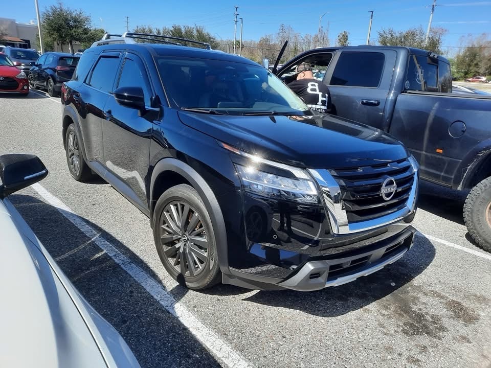 Here’s a 2024 Nissan Pathfinder Platinum. The Nissan Pathfinder is an SUV that’s been in production since 1985. This is from the fifth generation (R53), which has been in production since May of 2021 (the first model year was 2022). The engine is a 3.5 liter VQ35DD V6 that produces 284 horsepower and 259 pound-feet of torque. The transmission is a 9-speed automatic.