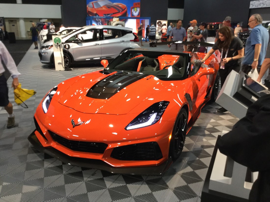 Today’s car of the day is this 2018 Corvette ZR1 that was at the 2018 Barrett-Jackson Auction in Palm Beach. It’s from the C7 series, which has been in production since 2013 (the first model year was 2014). The ZR1 was unveiled at the 2017 Dubai Motor Show, and the convertible version was unveiled at the 2017 Los Angeles Auto Show. The engine is the LT5, which is a 6.2 liter supercharged V8 that produces 755 horsepower and 715 pound-feet of torque. The transmission of this one is a 7-speed manual. This car weighs 3,583 pounds since the chassis is an aluminum spaceframe. The front splitter and rear spoiler are carbon fiber. This car does 0-60 mph in 2.8 seconds and has a top speed of 211 mph. The starting price of the ZR1 is $120,000.
