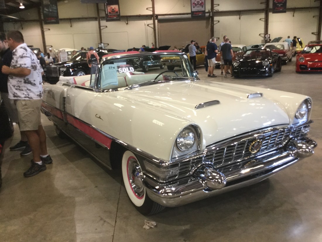 Today’s car of the day is this ’55 Packard Caribbean that was at the 2018 Barrett-Jackson Auction in Palm Beach. The Packard Caribbean is a luxury car that was made between 1953 and 1956. This is number 244 of the 500 that came in the tri-color of rose quartz, gray pearl poly, and jade white. The engine is a 5.8 liter V8 that produces 275 horsepower and 355 pound-feet of torque. The transmission is a 2-speed automatic. This car does 0-60 mph in 10.9 seconds and has a top speed of 109 mph. This Packard sold for $56,100.