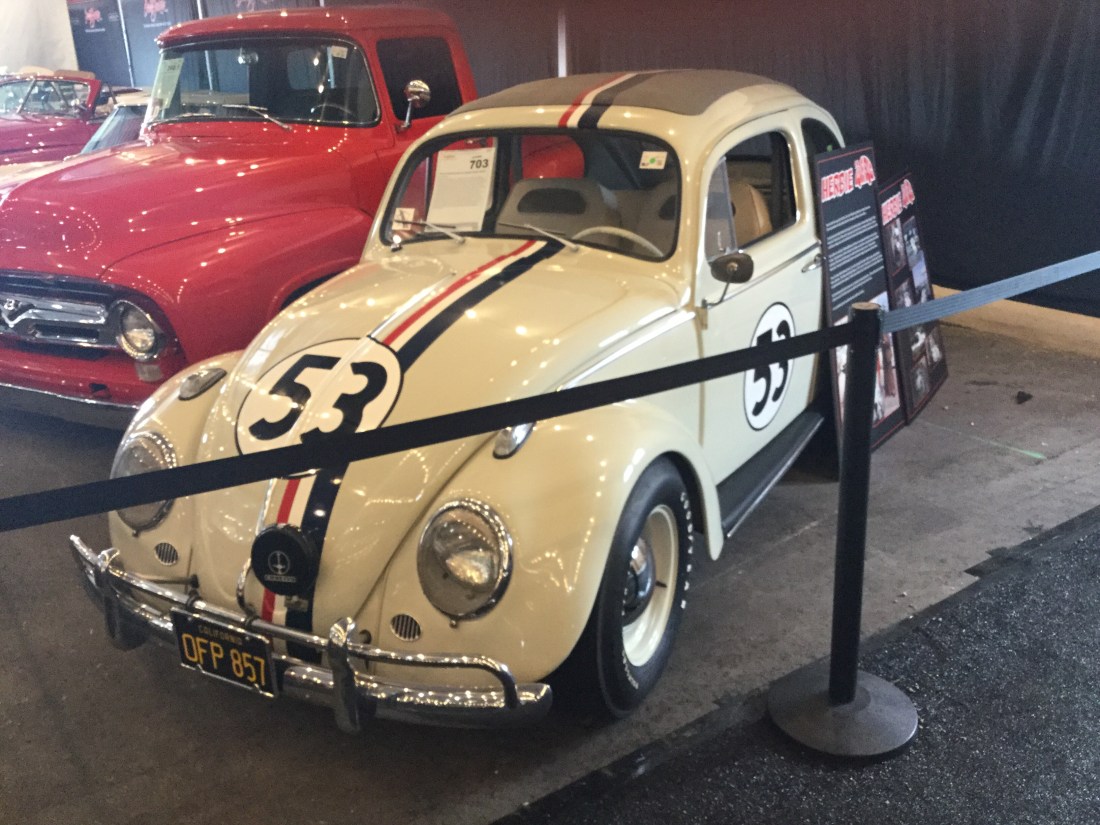 Today’s car of the day is this ’63 Volkswagen Beetle that was used in the Herbie movies, and I saw it at the 2018 Barrett-Jackson Auction in Palm Beach. The original Volkswagen Beetle was made between 1933 and 2003. The engine of this one is a 1.2 liter flat-4 that produces 40 horsepower. The transmission is a 4-speed manual. This Beetle was auctioned off for $128,700.