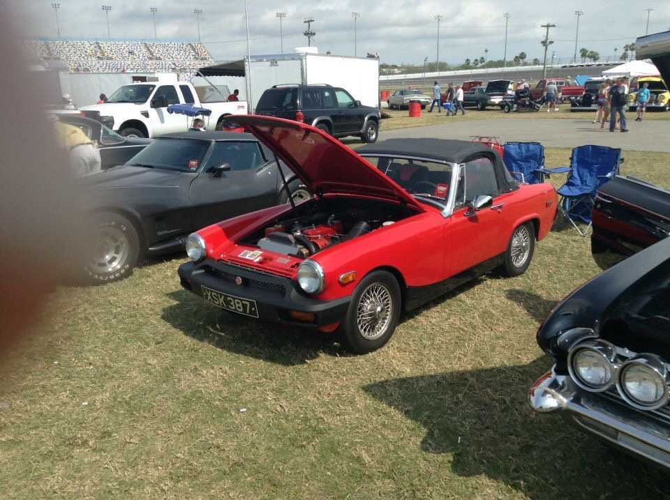 Today’s car of the day is this MG Midget 1500 that was at the 2013 Daytona Spring Show. The MG Midget is a sports car that was made between 1961 and 1980. The 1500 series was made between 1974 and 1980. The engine is a 1.5 liter straight-4 that produces 56 horsepower and 73 pound-feet of torque. The transmission is a 4-speed manual. This car does 0-60 mph in 14.5 seconds and has a top speed of 91 mph.