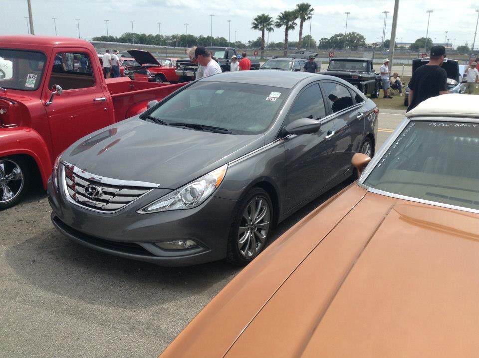 Today’s car of the day is this Hyundai Sonata that was at the 2013 Daytona Spring Show. The Hyundai Sonata is a luxury sedan that’s been in production since 1985. This is from the sixth generation (YF), which was made between 2009 and 2014 (model years between 2010 and 2015). The engine of this one is a Theta Turbo GDi turbocharged strait-4 that produces 274 horsepower and 269 pound-feet of torque. The transmission is a 6-speed automatic.
