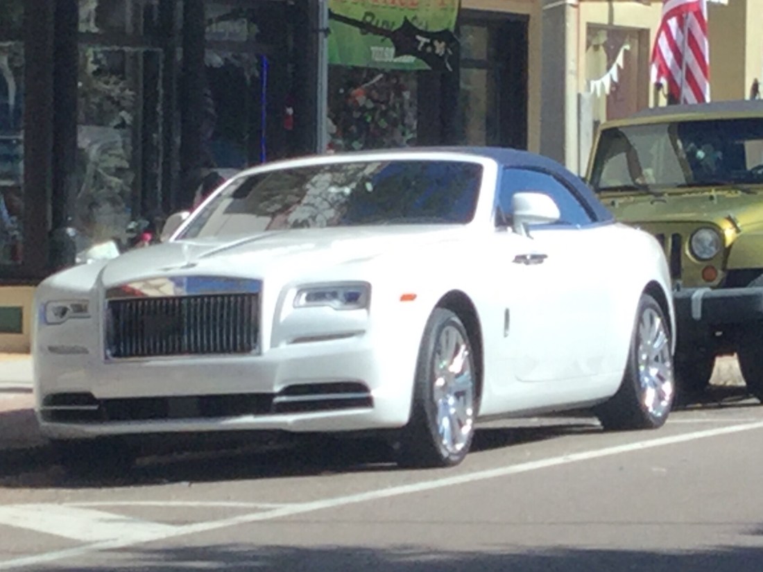 Today’s car of the day is this Rolls-Royce Dawn that I saw in Tarpon Springs yesterday. The Rolls-Royce Dawn is a luxury car that’s been in production since 2015 (the first model year was 2016), and was unveiled at the 2015 Frankfurt Motor Show. The engine is a 6.6 liter twin turbo BMW N74 V12 that produces 563 horsepower and 575 pound-feet of torque. The transmission is an 8-speed automatic. This car does 0-60 mph in 4.9 seconds and has a top speed of 155 mph. This car weighs 5,644 pounds. The starting price of the Dawn is $346,300.