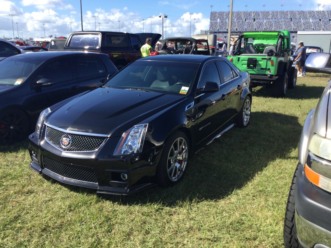 Here’s a Cadillac CTS-V that was at the 2018 Daytona Turkey Rod Run. The CTS-V is a high performance version of the CTS, and has been in production since 2004. This is from the second generation, which was made between 2008 and 2014 (model years between 2009 and 2015). The engine is the LSA, which is a 6.2 liter supercharged V8 that produces 556 horsepower and 551 pound-feet of torque. The transmission of this one is a 6-speed automatic. This car does 0-60 mph in 3.9 seconds and has a top speed of 191 mph.