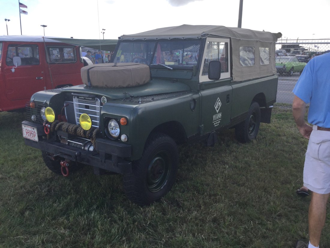 This is a Land Rover Series III that was at the 2018 Daytona Turkey Rod Run. The Land Rover Series III was made between 1971 and 1985. The engine of this one is a 2.3 liter straight-4 that produces 70 horsepower and 119 pound-feet of torque. The transmission is a 4-speed manual. This SUV does 0-60 mph in 25.4 seconds and has a top speed of 63 mph.