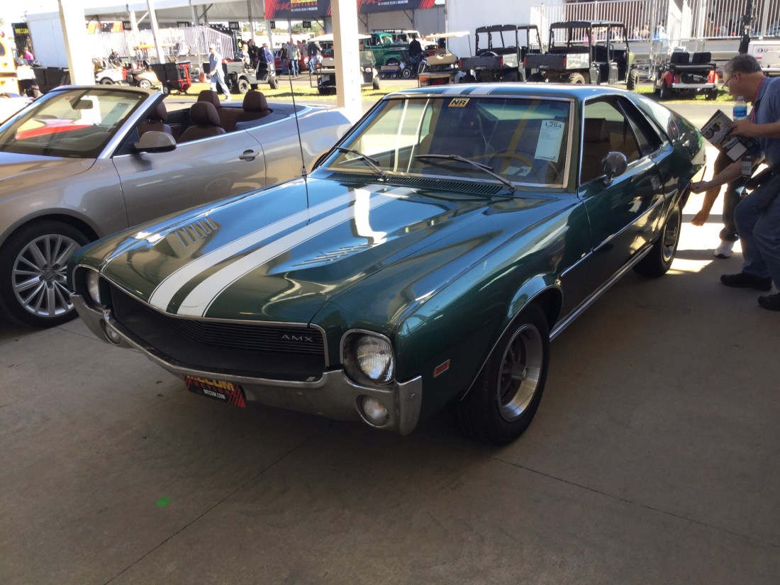 This is a ’68 AMC AMX that was at the 2019 Mecum Auction in Kissimmee. The AMC AMX is a muscle car that was made between 1968 and 1970. The engine of this one is a 6.4 liter V8 that produces 315 horsepower and 425 pound-feet of torque. The transmission of this one is a 4-speed manual.