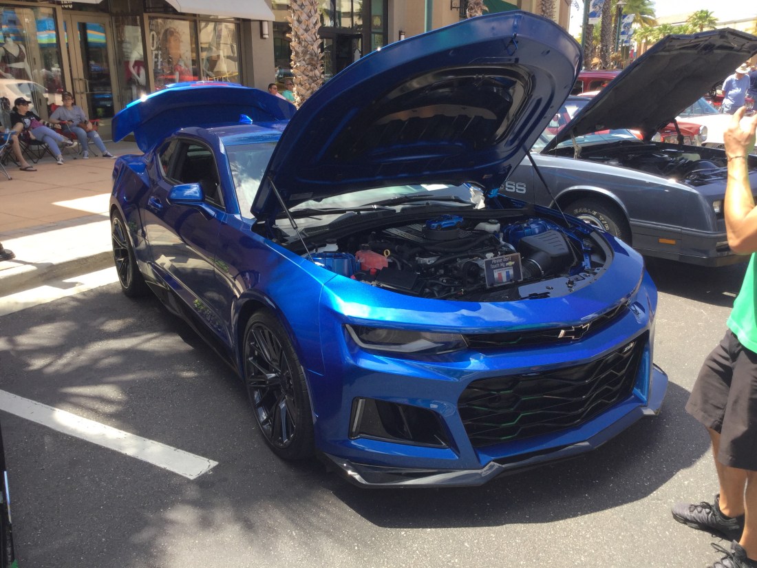 This is a 2017 Chevy Camaro ZL1 that was at the 2019 Shops at Wiregrass Car & Truck Show. This is from the sixth generation of the Camaro, which has been in production since November of 2015 (the first model year was 2016). The engine is the LT4, which is a 6.2 liter supercharged V8 that produces 640 horsepower and 640 pound-feet of torque. The transmission of this one is a 10-speed automatic, but it can also come with a 6-speed manual. This car does 0-60 mph in 3.5 seconds and has a top speed of 198 mph.