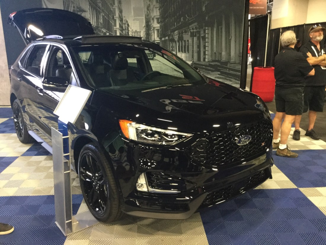 That’s a 2019 Ford Edge ST that was at the 2019 Barrett-Jackson Auction in Palm Beach. The Ford Edge is a crossover that’s been in production since 2006 (the first model year was 2007). This is from the second generation, which has been in production since 2014 (the first model year was 2015). The ST is a high performance model. The engine is a 2.7 liter turbocharged EcoBoost V6 that produces 335 horsepower and 380 pound-feet of torque. The transmission is an 8-speed automatic. This crossover does 0-60 mph in 5.7 seconds and has a top speed of 133 mph. The starting price of the Edge ST is $42,355.