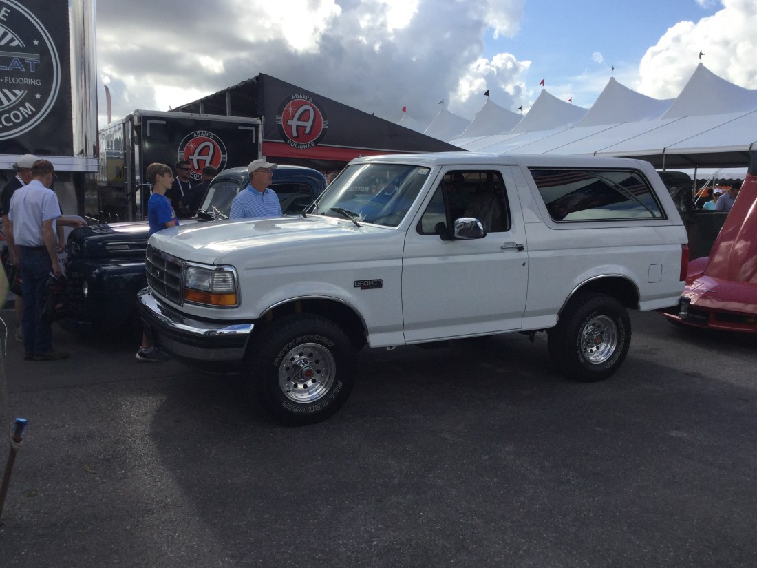 That’s a ’92 Ford Bronco XLT that was at the 2019 Barrett-Jackson Auction in Palm Beach. The Ford Bronco is an SUV that was originally made between 1965 and 1996 (model years between 1966 and 1996). This is from the fourth generation, which was made between 1986 and 1991 (model years between 1987 and 1991). The engine is a 5.8 liter V8 that produces 210 horsepower and 315 pound-feet of torque. The transmission is a 4-speed automatic. This SUV does 0-60 mph in 10.5 seconds and has a top speed of 101 mph. This Bronco sold for $15,400.