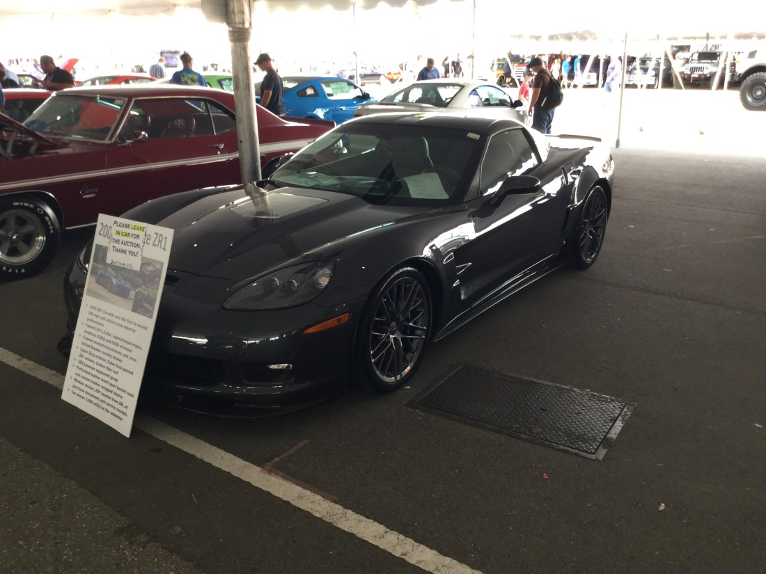 This is a 2009 Corvette ZR1 that was at the 2019 Barrett-Jackson Auction in Palm Beach. It’s from the C6 series, which was made between June of 2004 and February of 2013 (model years between 2005 and 2013). The ZR1 was unveiled at the 2008 North American International Auto Show. The engine is the LS9, which is a 6.2 liter supercharged V8 that produces 638 horsepower and 604 pound-feet of torque. The transmission is a 6-speed manual. This car does 0-60 mph in 3.4 seconds and has a top speed of 205 mph. This car weighs 3,380 pounds since the body panels are composite, the chassis is a hydroformed steel frame, and the front fenders, roof, and hood are carbon fiber. This Corvette was auctioned off for $77,000.
