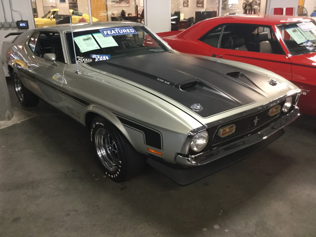 This is a ’71 Mustang Boss 351 that was at Streetside Classics Tampa in July of 2019. This is from the fourth phase of the first generation of the Mustang, which was made between 1970 and 1973 (model years between 1971 and 1973). The Boss 351 is a performance variant that was made in 1971. The engine is a 5.8 liter Cleveland V8 that produces 330 horsepower and 370 pound-feet of torque. The transmission is a 4-speed manual.