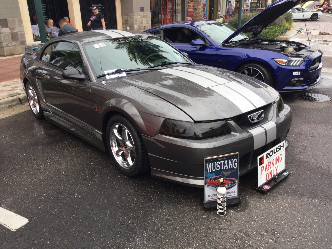 This is a 2004 Roush Mustang that was at the 2019 Shops at Wiregrass Series Car & Truck Show. This is based on the second phase of the fourth generation of the Mustang, which was made between 1998 and 2004 (model years between 1999 and 2004). The engine is a 4.6 liter Modular V8 that produces 260 horsepower and 302 pound-feet of torque. The transmission is a 5-speed manual.