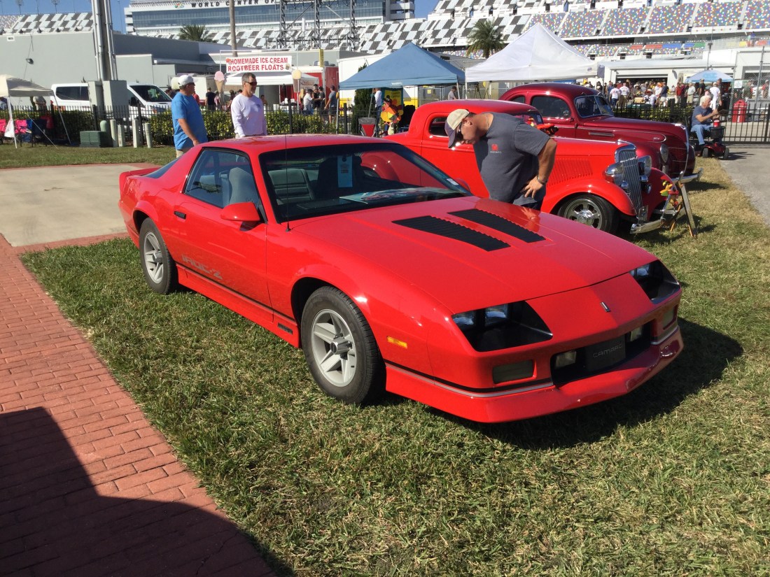 This is an ‘85 Chevy Camaro IROC-Z that was at the 2019 Daytona Turkey Rod Run. It’s from the third generation, which was made between October of 1981 and August of 1992 (model years between 1982 and 1992). The IROC-Z was introduced as an option package in 1985. The engine is a 5 liter V8 that produces 155 horsepower and 245 pound-feet of torque. The transmission of this one is a 4-speed automatic. This car does 0-60 mph in 9.1 seconds and has a top speed of 129 mph.