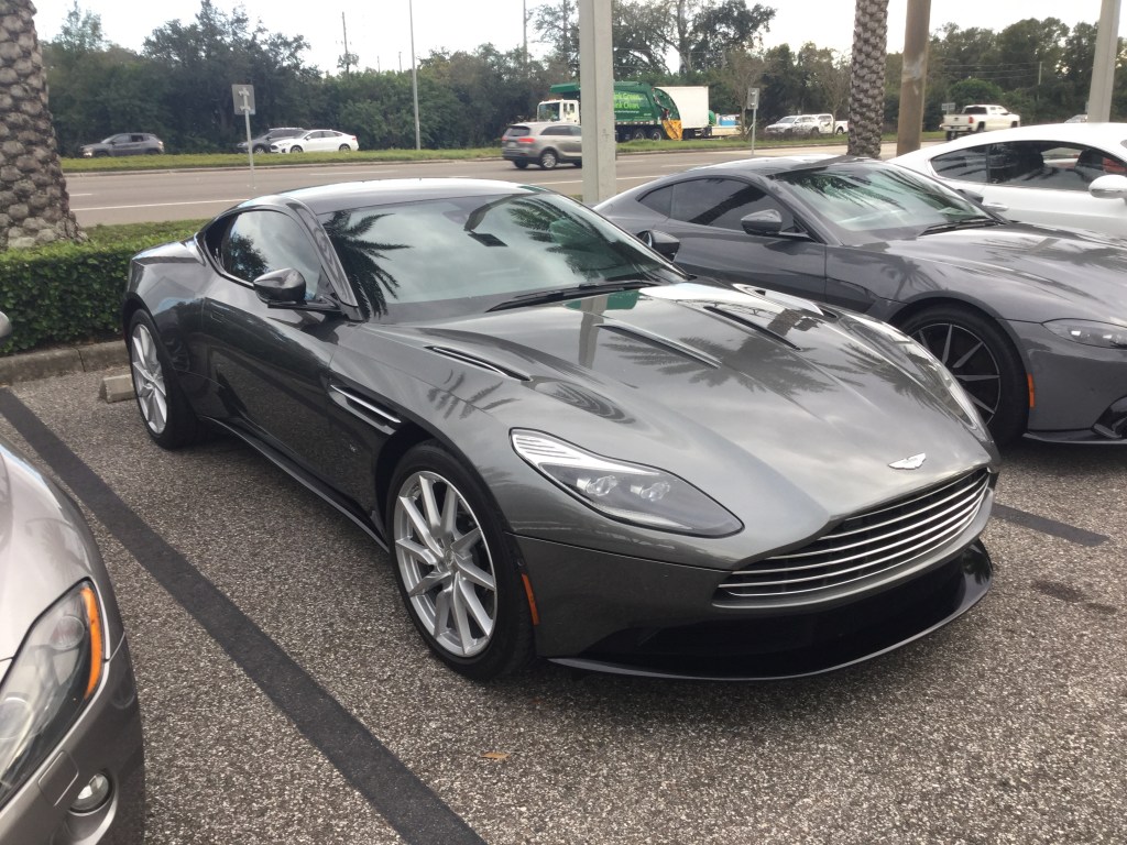 This is a 2020 Aston Martin DB11 V8 that I saw at Rolls-Royce Tampa Bay in January of 2020. The DB11 is the replacement for aging DB9. This car was unveiled at the 2016 Geneva Motor Show, despite the fact that photos of the DB11 were leaked online twice before it was unveiled. The V8 model was unveiled at the 2017 Goodwood Festival of Speed. The engine of this one is a 4 liter Mercedes-AMG M177 twin turbo V8 that produces 503 horsepower and 498 pound-feet of torque. The transmission is an 8-speed automatic. This car does 0-62 mph in 4 seconds and has a top speed of 187 mph. This car weighs 3,880 pounds since the body panels are aluminium and cast magnesium, and the chassis is an extruded bonded aluminium monocoque. The starting price of the DB11 is $198,995.