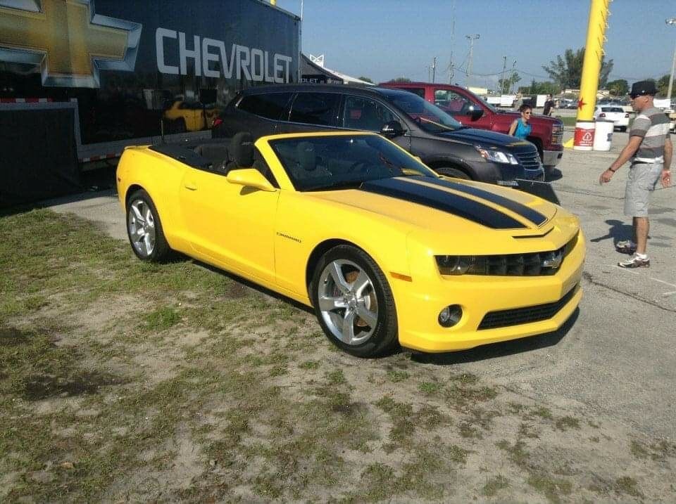This is a 2013 Chevy Camaro SS that was at the 2013 Barrett-Jackson Auction in Palm Beach. This is from the fifth generation of the Camaro, which was made between March of 2009 and November of 2015. The engine is a 6.2 liter LS3 V8 that produces 422 horsepower and 408 pound-feet of torque. The transmission of this one is a 6-speed manual.