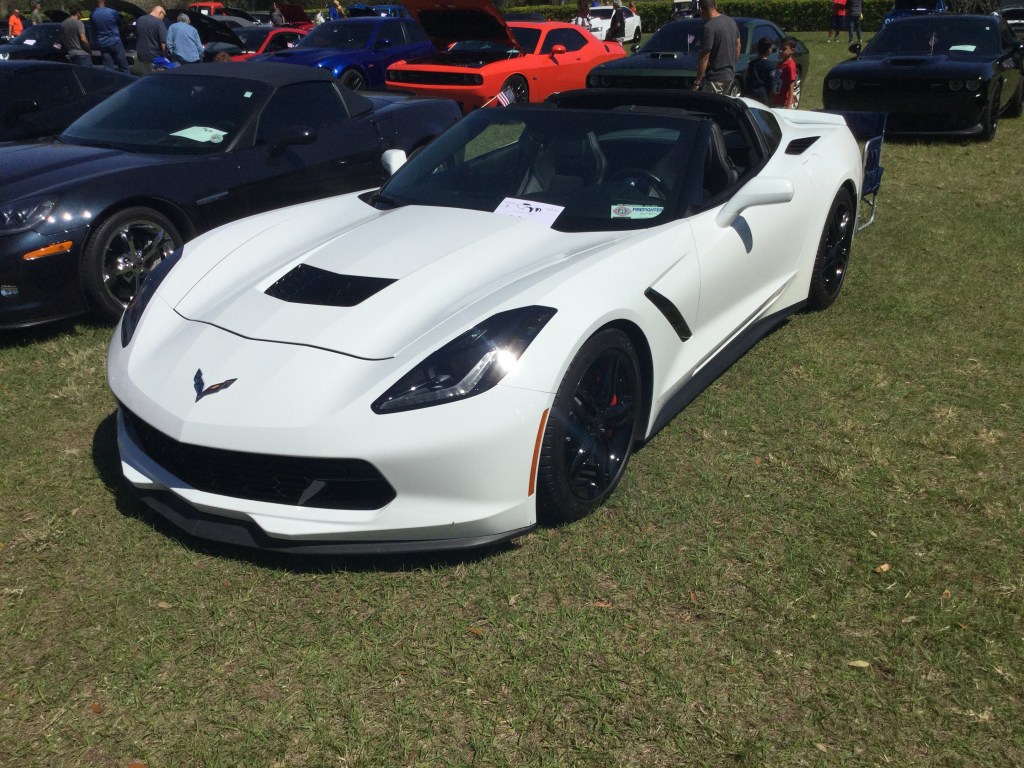 This is a 2016 Corvette Stingray that was at the 2021 Odessa Cruise For A Cause. The Corvette is a high performance car that’s been in production since 1953. This is from the C7 series, which was made between 2013 and 2019 (model years between 2014 and 2019). The engine is a 6.2 liter LT1 V8 that produces 455 horsepower and 455 pound-feet of torque. The transmission of this one is an 8-speed automatic. This car does 0-60 mph in 3.8 seconds and has a top speed of 195 mph.