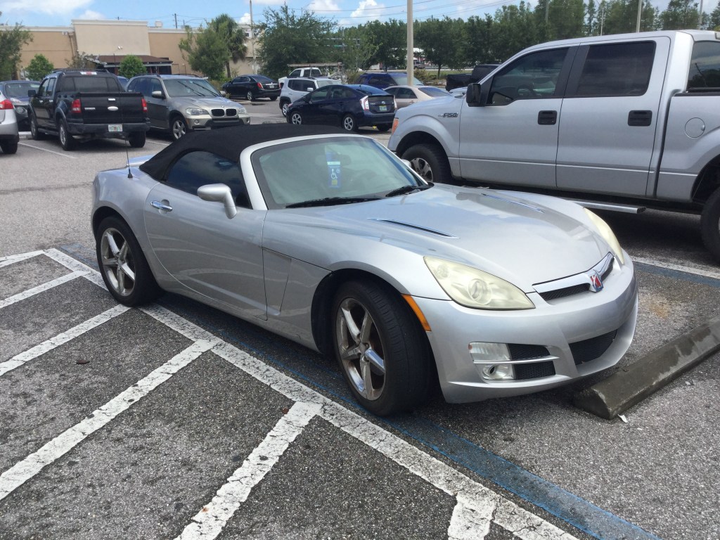 Here’s a 2007 Saturn Sky. The Saturn Sky is a sports car that was made between 2006 and 2009 (model years between 2007 and 2010). The engine of this one is a 2.4 liter LE5 straight-4 that produces 177 horsepower and 173 pound-feet of torque. The transmission of this one is a 5-speed automatic. This car does 0-60 mph in 6.9 seconds and has a top speed of 123 mph.
