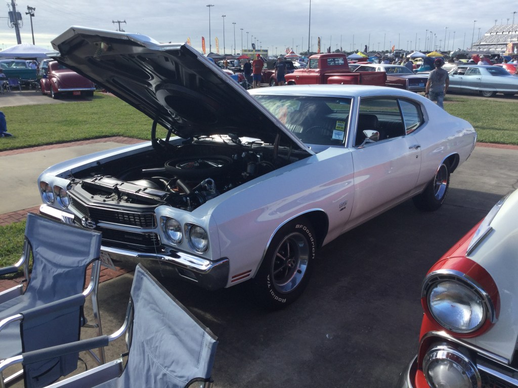 This is a ’70 Chevelle SS that was at the 2021 Daytona Turkey Rod Run. The Chevy Chevelle is a mid-size car that was made between 1963 and 1977 (model years between 1964 and 1977). This is from the second generation, which was made between 1967 and 1972 (model years between 1968 and 1972). The engine of this one is a 7.4 liter Big-Block V8 that produces 450 horsepower and 500 pound-feet of torque. The transmission of this one is a 4-speed manual. This car does 0-60 mph in 5.6 seconds and has a top speed of 139 mph.