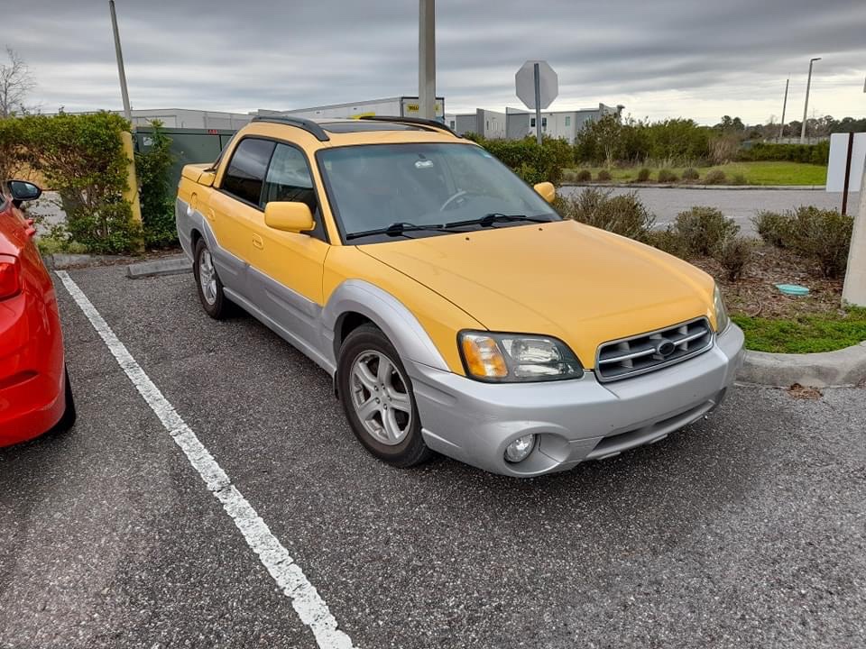 That’s a 2005 Subaru Baja. The Subaru Baja is a truck that was made between July of 2002 and April of 2006 (model years between 2003 and 2006). The engine of this one is a 2.5 liter turbocharged EJ255 flat-4 that produces 210 horsepower and 235 pound-feet of torque. The transmission of this one is a 5-speed manual.