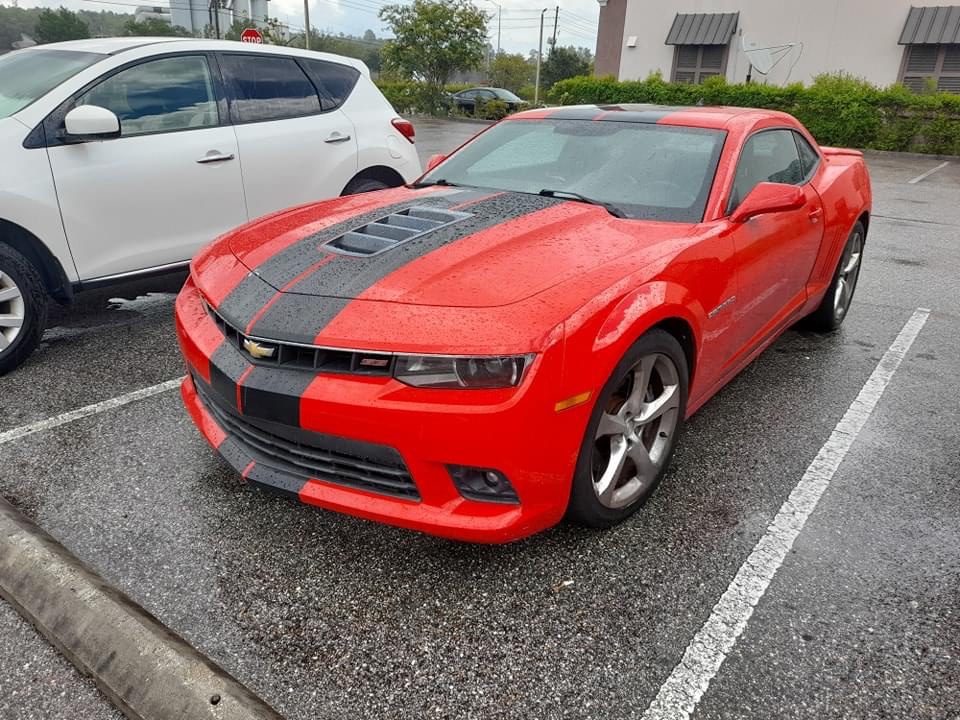 This is a 2014 Chevy Camaro SS. The Chevy Camaro is a muscle car that was originally made between September of 1966 and August of 2002 (model years between 1967 and 2002). Production started back up in March of 2009 (the first model year was 2010). This is from the fifth generation, which was made between March of 2009 and November of 2015 (model years between 2010 and 2015). The engine is a 6.2 liter LS3 V8 that produces 426 horsepower and 420 pound-feet of torque. The transmission of this one is a 6-speed automatic.