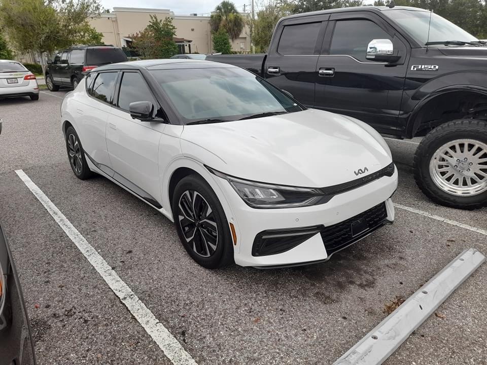That’s a 2023 Kia EV6 GT-Line. The Kia EV6 is an electric crossover that’s been in production since 2021 (the first model year was 2022). The electric motor is a 77.4 kilowatt lithium polymer battery that produces 320 horsepower and 446 pound-feet of torque. The transmission is a 1-speed reduction gear. This crossover has a towing capacity of 2,300 pounds.