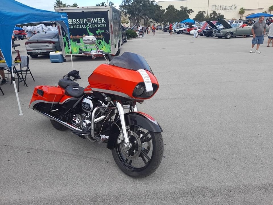 That’s a 2009 Harley-Davidson CVO Road Glide that was at the 2023 Gulf View Square Mall Car Show. The Harley-Davidson CVO is a line of motorcycles that’s been in production since 2009. The engine is a 1.9 liter v-twin that produces 105 horsepower and 126 pound-feet of torque. The transmission is a 6-speed dry clutch.