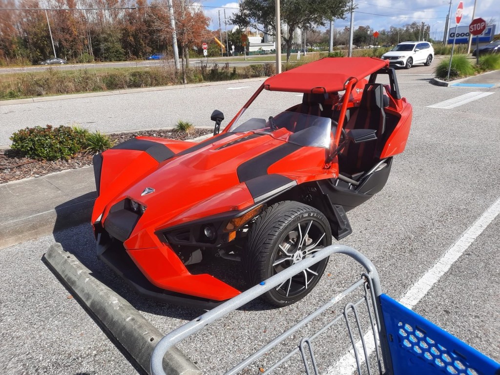 That’s a 2017 Polaris Slingshot. The Polaris Slingshot is a three-wheeled motorcycle that’s been in production since 2014 (the first model year was 2015). The engine is a 2.4 liter straight-4 that produces 173 horsepower and 166 pound-feet of torque. The transmission is a 5-speed syncromesh. This motorcycle does 0-60 mph in 6 seconds and has a top speed of 130 mph.