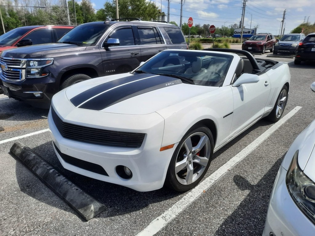 This is a 2013 Chevy Camaro RS. The Chevy Camaro is a muscle car that was originally made between September of 1966 and August of 2002 (model years between 1967 and 2002). The second production run lasted from 2009 to 2023 (model years between 2010 and 2024). This is from the fifth generation, which was made between March of 2009 and November of 2015 (model years between 2010 and 2015). The engine is a 6.2 liter LS3 V8 that produces 426 horsepower and 420 pound-feet of torque. The transmission of this one is a 6-speed automatic.