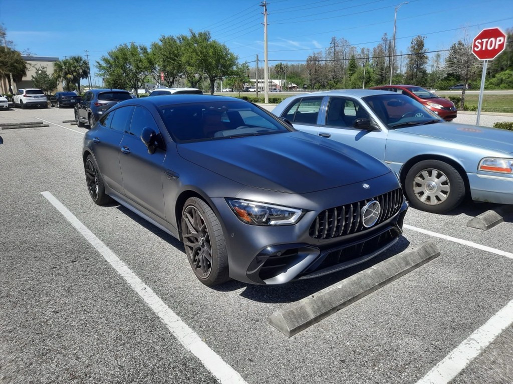 This is a 2022 Mercedes-Benz GT53 AMG. The Mercedes-Benz GT-Class is a line of sports sedans that’s been in production since 2018 (the first model year was 2019). The engine is a 3 liter supercharged and turbocharged M256 inline-6 with a lithium-ion battery that produce a total of 429 horsepower 384 pound-feet of torque. The transmission is a 9-speed automatic. This car does 0-60 mph in 4.1 seconds and has a top speed of 174 mph.