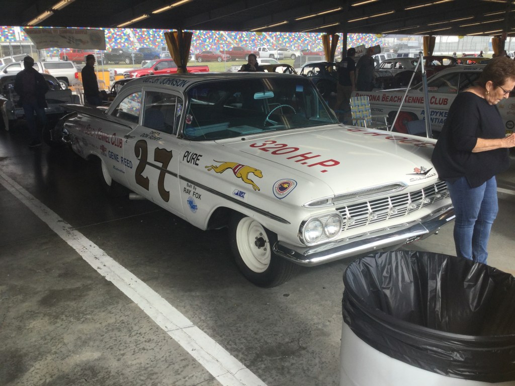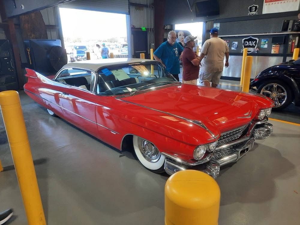 This is a ’59 Cadillac Eldorado. The Cadillac Eldorado is a luxury car that was made between 1952 and 2002. This is from the third generation, which was made between 1957 and 1960. The engine is a 6.4 liter OHV V8 that produces 345 horsepower and 435 pound-feet of torque. The transmission is a 4-speed automatic. This car does 0-60 mph in 10 seconds and has a top speed of 127 mph.