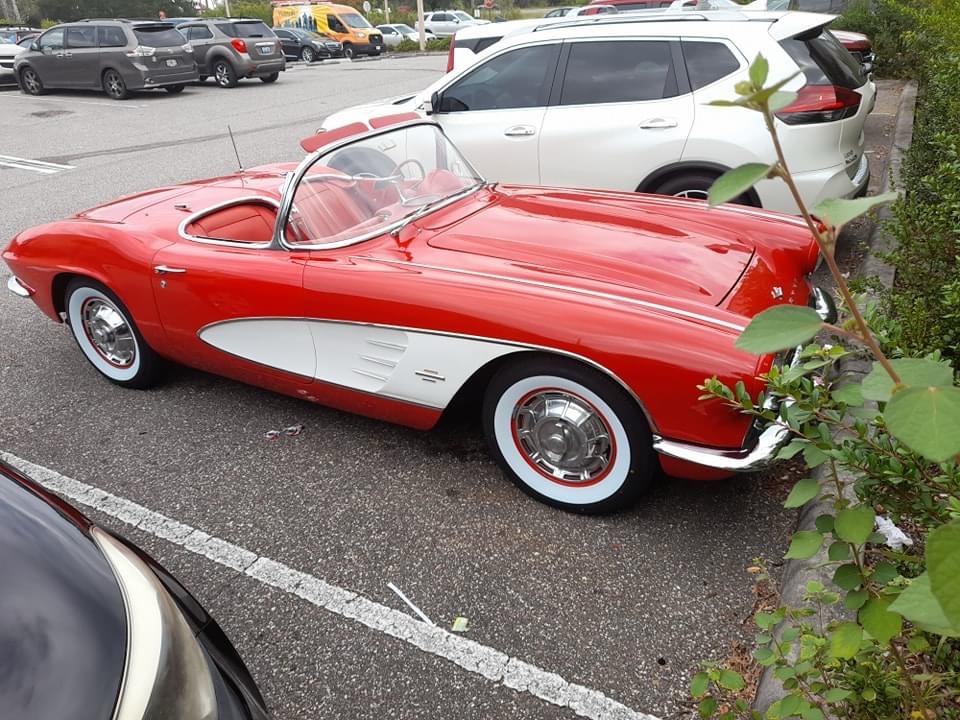 This is a ‘61 Corvette. The Corvette is a high performance car that’s been in production since 1953. This is from the C1 generation, which was made between 1953 and 1962. The engine of this one is a 4.6 liter Small-Block V8 that produces 270 horsepower and 285 pound-feet of torque. The transmission of this one is a 4-speed manual. This car does 0-60 mph in 6.9 seconds and has a top speed of 132 mph.
