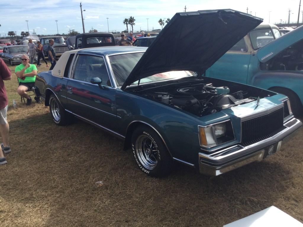 This is a ‘79 Buick Regal Limited that was at the 2021 Daytona Turkey Rod Run. The Buick Regal is a luxury car that was originally made between 1973 and 2004. The second production run lasted from 2011 to 2020. This is from the second generation, which was made between 1978 and 1987. The engine is a 4.9 liter V6 that produces 140 horsepower and 235 pound-feet of torque. The transmission is a 3-speed automatic. This car does 0-60 mph in 11.6 seconds and has a top speed of 111 mph.