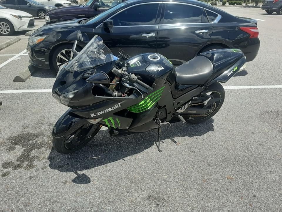 This is a 2011 Kawasaki Ninja ZX-14. The Ninja ZX-14 is a sports bike that’s been in production since 2006. The engine is a 1.4 straight-4 that produces 200 horsepower and 113 pound-feet of torque. The transmission is a 6-speed wet clutch. This motorcycle does 0-60 mph in 2.5 seconds and has a top speed of 186 mph.
