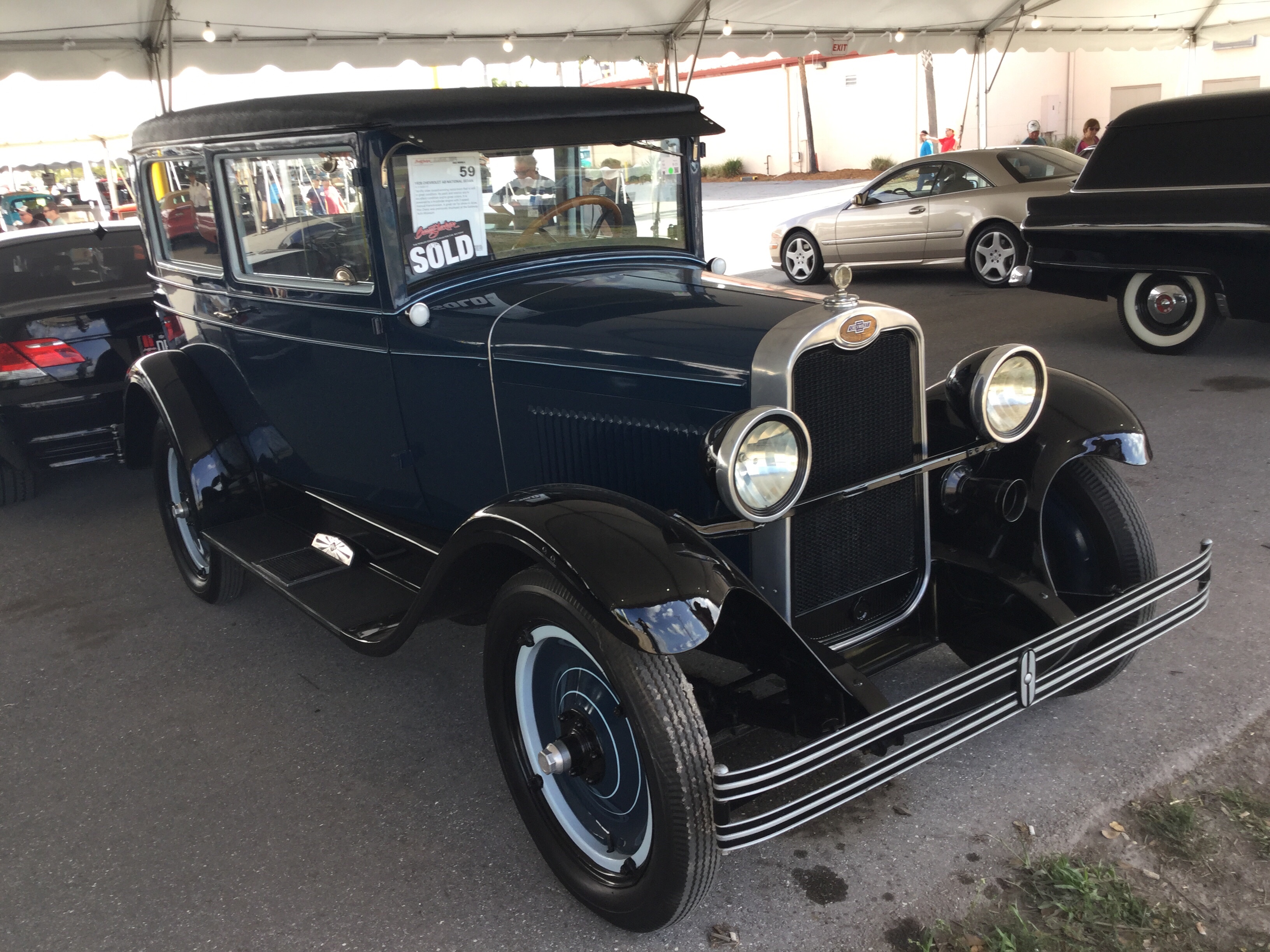 Today’s car of the day is this ’28 Chevy AB National Sedan that was at the 2018 Barrett-Jackson Auction in Palm Beach. The Chevy Series AB National was made in 1928 as a replacement for the ’27 Series AA Capitol. The engine is a 2.8 liter straight-4 that produces 35 horsepower. The transmission is a 3-speed manual. This Chevy sold for $12,870.