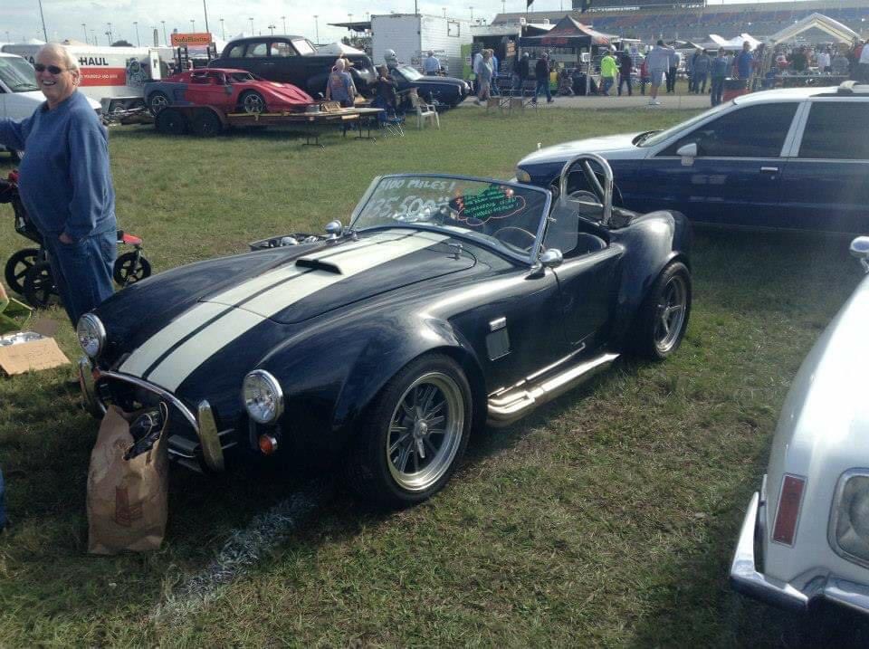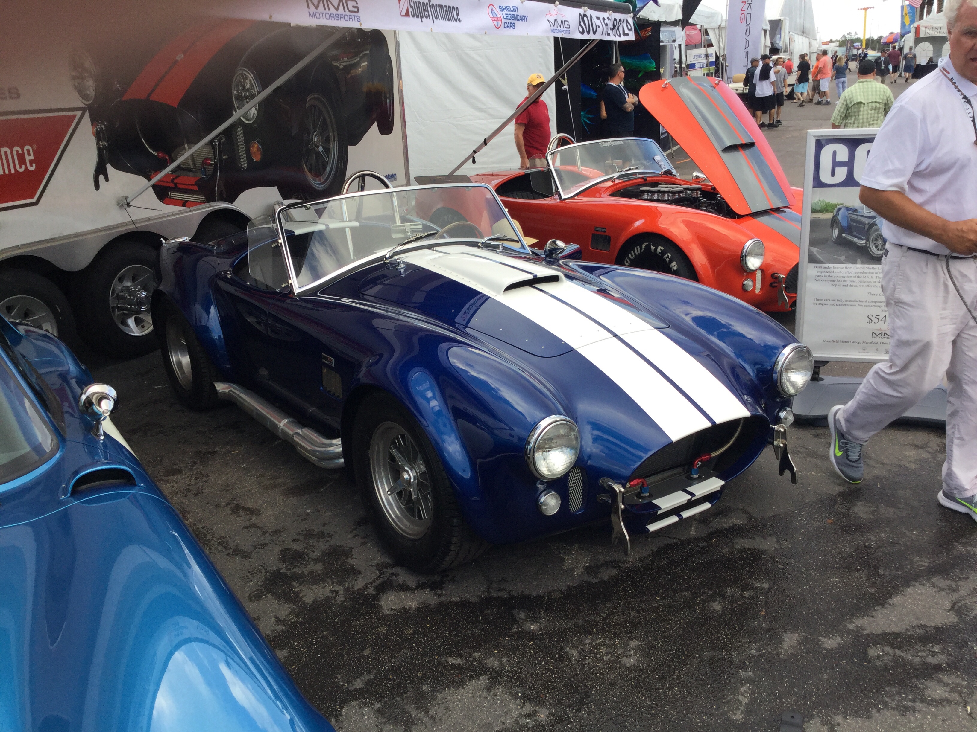 This is a ’66 Shelby Cobra 427 that was at the 2014 Barrett-Jackson Auction in Palm Beach. The Shelby/AC Cobra is a sports car that was made between 1962 and 1967. This is from the Mark III generation, which was made between 1965 and 1967. The engine of this one is a 7 liter V8 that produces 410 horsepower and 462 pound-feet of torque. The transmission is a 4-speed manual. This car does 0-60 mph in 3.8 seconds and has a top speed of 140 mph. This car weighs 2,359 pounds since the body is made of aluminum.