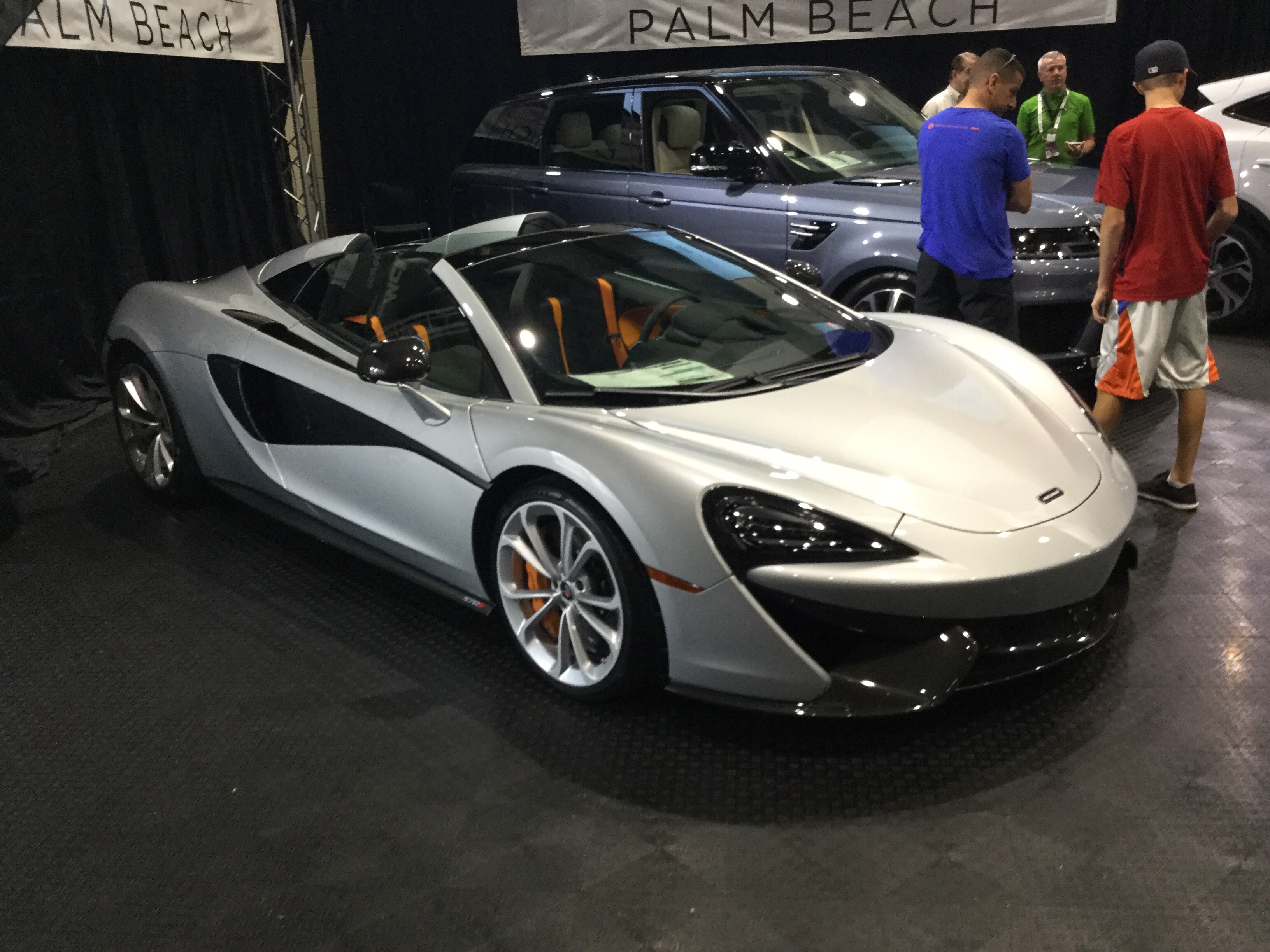 Here’s a 2021 McLaren 570S Spider. The McLaren 570S is a supercar that was unveiled at the 2015 New York Auto Show and was made between 2015 and 2021. The engine is a 3.8 liter M838T E twin turbo V8 that produces 562 horsepower and 443 pound-feet of torque. The transmission is a 7-speed DCT. This car does 0-60 mph in 3.2 seconds and has a top speed of 204 mph. This car weighs 2,996 pounds since the chassis is a carbon fiber composite monocoque. The side skirts, front splitter, and side mirrors are carbon fiber.