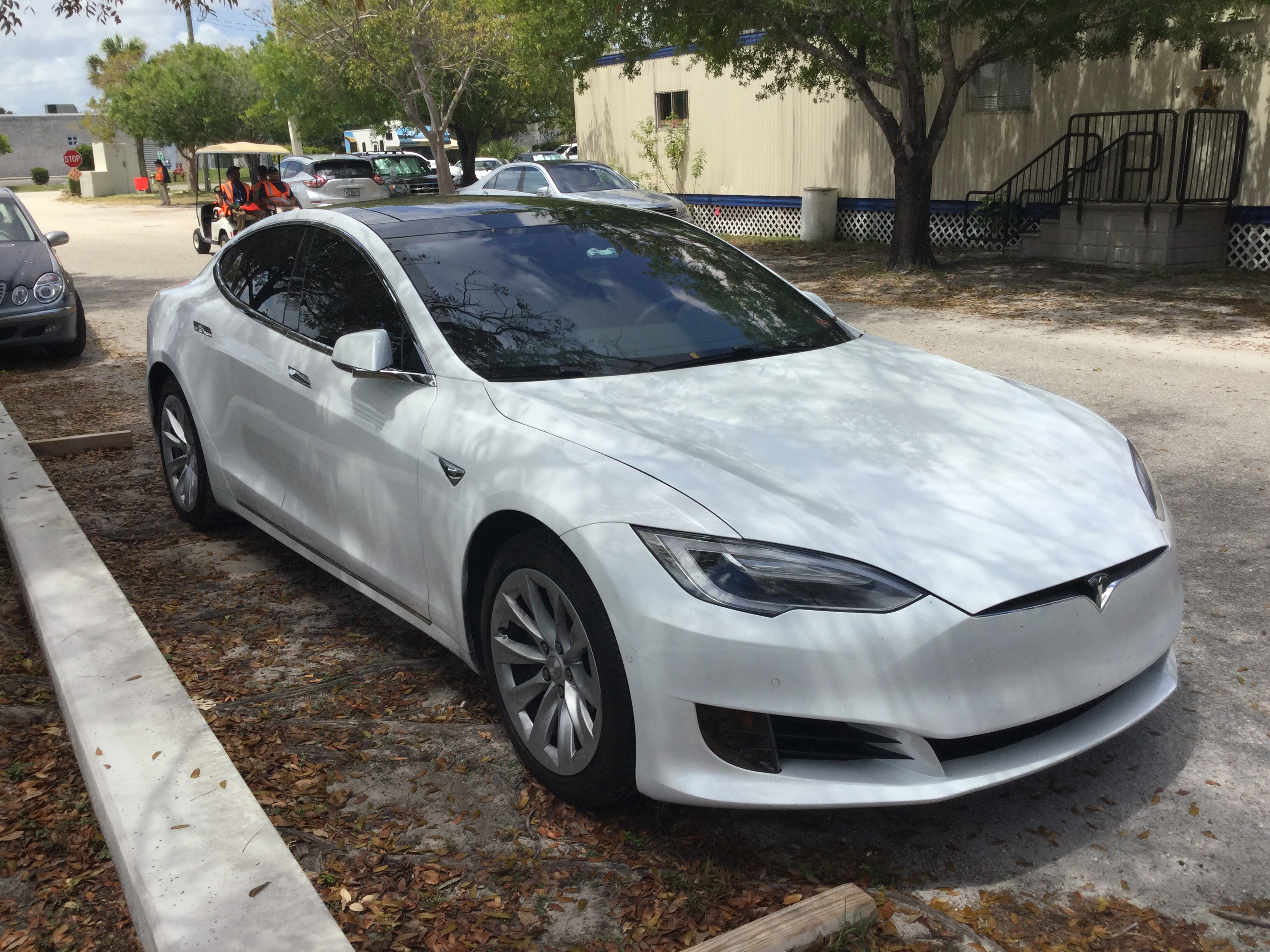 That’s a 2020 Tesla Model S 75D. The Tesla Model S is a fully electric luxury sedan that’s been in production since 2012. The 75D was made between 2016 and 2019. The battery is a 75 kilowatt lithium-ion battery that produces 469 horsepower and 443 pound-feet of torque. The transmission is a 1-speed fixed gear. This car does 0-60 mph in 4.4 seconds and has a top speed of 140 mph. This car weighs 4,468 pounds since the chassis is an aluminum monocoque.