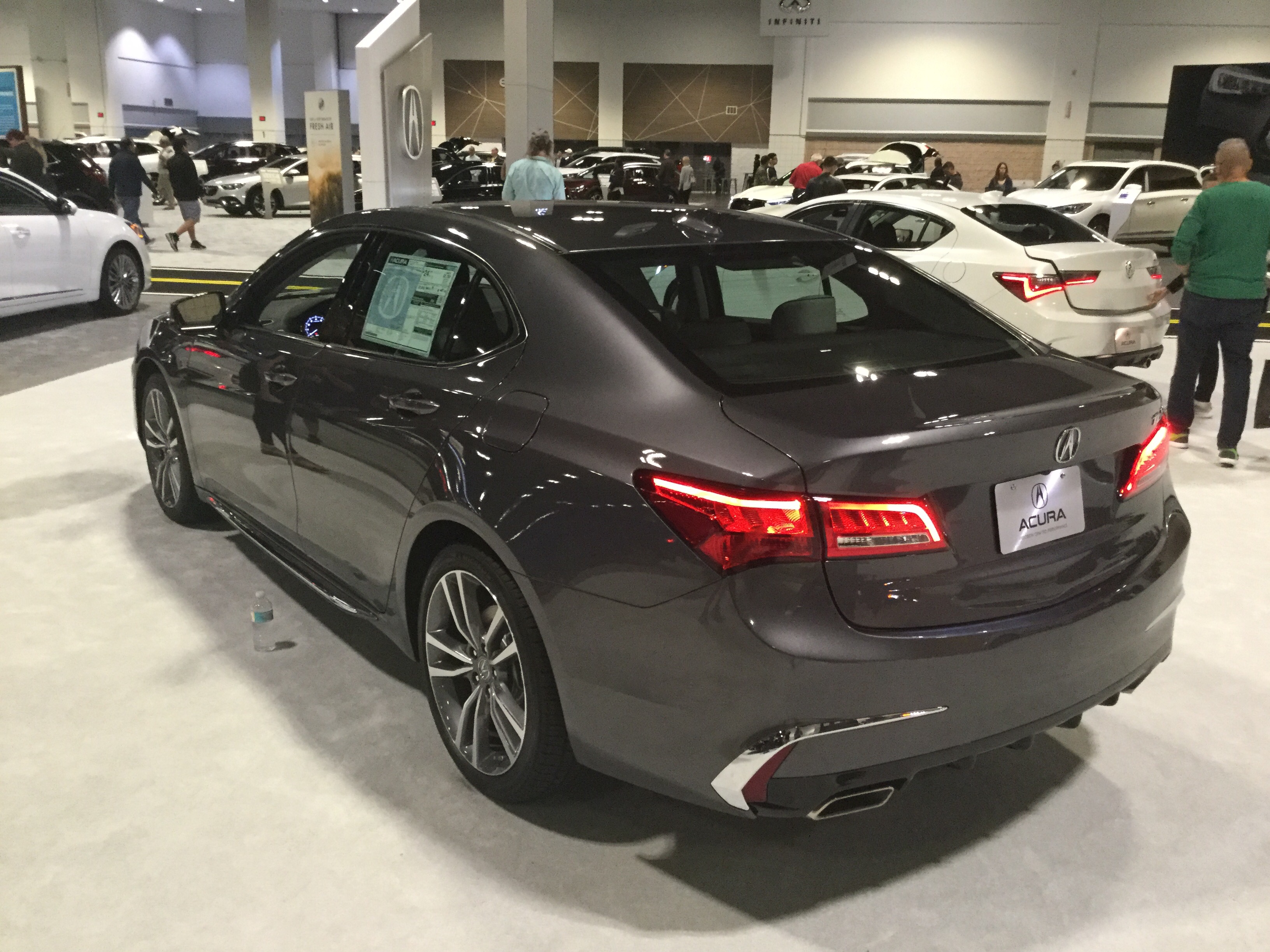 This is a 2019 Acura NSX that was at the 2018 Central Florida Auto Show. The first concept model was unveiled at the 2012 North American International Auto Show. The second concept model was unveiled a year later. The production model was unveiled at the 2015 North American International Auto Show. The new NSX reached production in May of 2016. The engine is a 3.5 liter twin turbo V6 with electric motors that produce a total of 573 horsepower and 476 pound-feet of torque. The transmission is a 9-speed dual-clutch automatic. This car does 0-60 mph in 2.9 seconds and has a top speed of 191 mph. The NSX also utilizes Acura’s Super Handling All Wheel Drive system. This car weighs 3,803 pounds since the body panels are aluminum and composite. The chassis is an aluminum and steel spaceframe and the floor is carbon fiber composite. The starting price of the new NSX is $157,500.