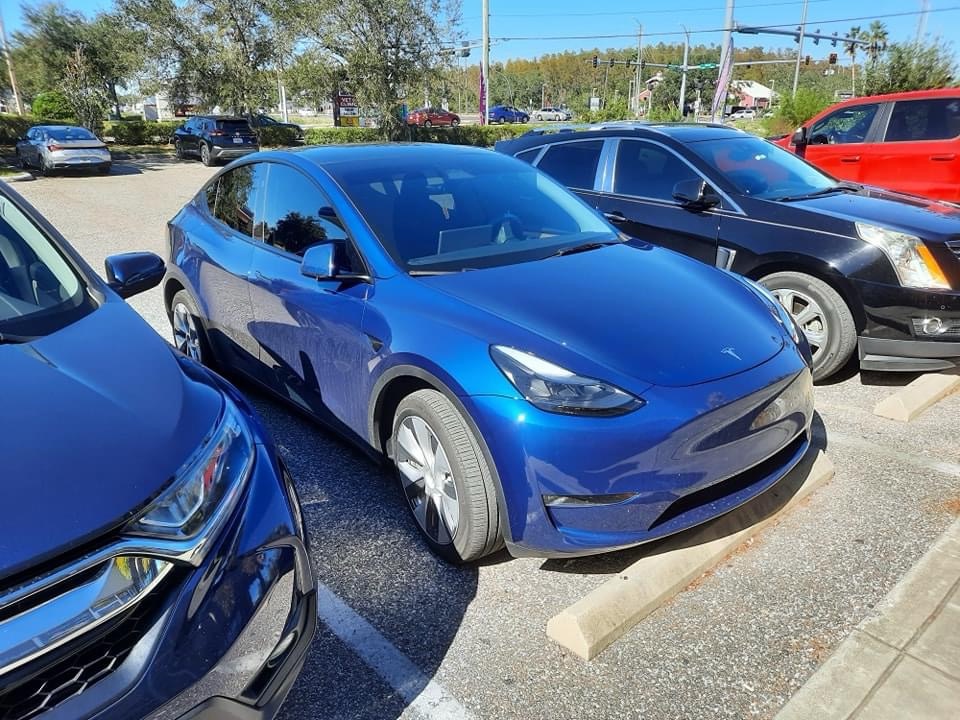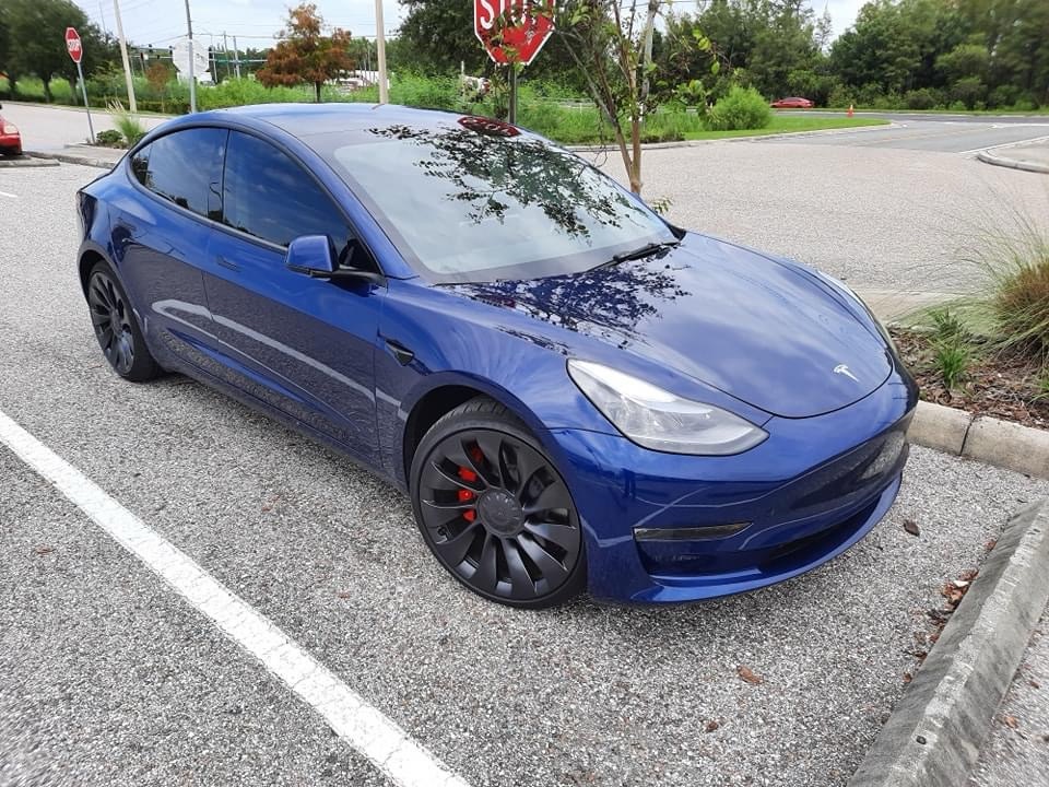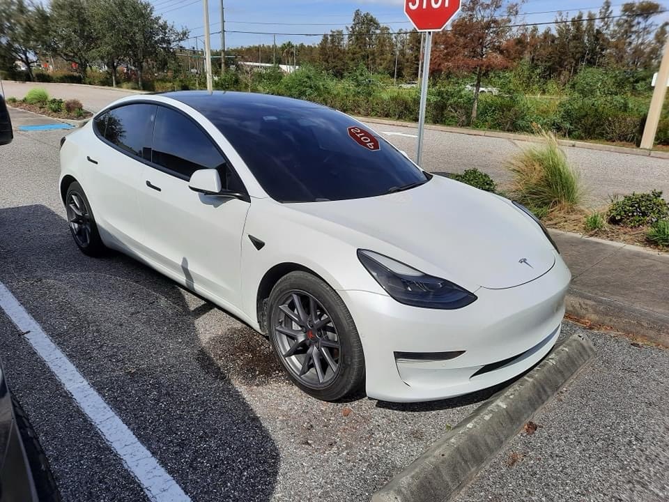 That’s a 2022 Tesla Model 3. The Tesla Model 3 is a fully electric compact luxury sedan that’s been in production since July of 2017. The motor of this one is a 75 kW lithium-ion battery that produces 450 horsepower and 471 pound-feet of torque. The transmission is a 1-speed direct drive. This car does 0-60 mph in 3.5 seconds and has a top speed of 153 mph.