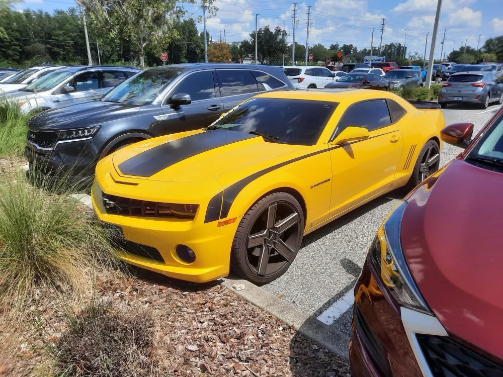 This is a 2013 Chevy Camaro SS. The Chevy Camaro is a muscle car that was originally made between September of 1966 and August of 2002 (model years between 1967 and 2002). The second production run lasted from 2009 to 2023 (model years between 2010 and 2024). This is from the fifth generation, which was made between March of 2009 and November of 2015 (model years between 2010 and 2015). The engine is a 6.2 liter LS3 V8 that produces 426 horsepower and 420 pound-feet of torque. The transmission of this one is a 6-speed manual.