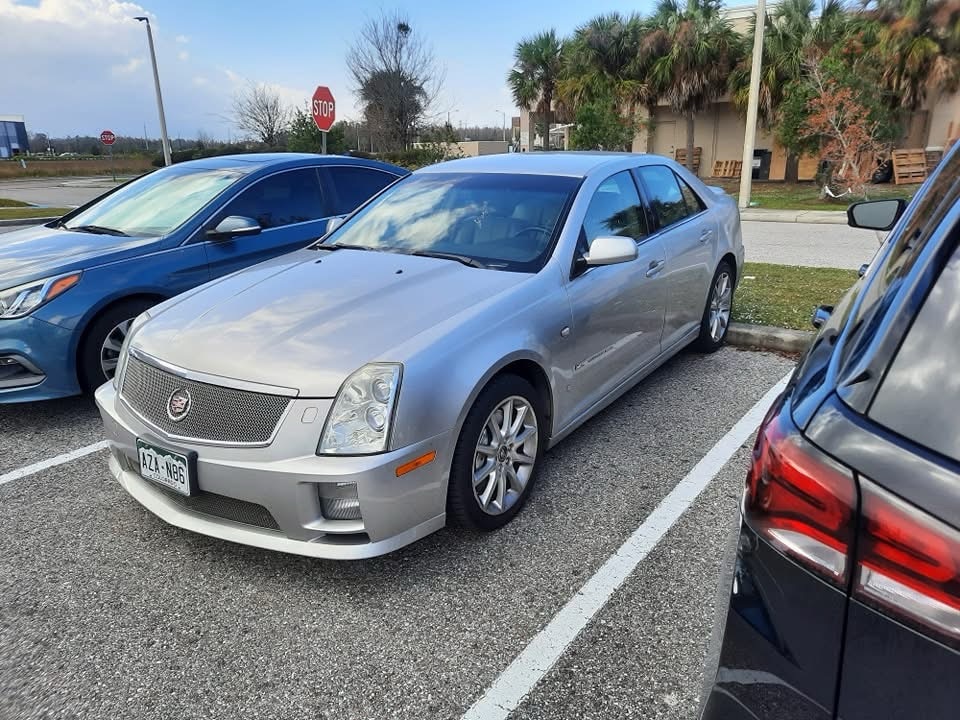 This is a 2006 Cadillac CTS-V. The Cadillac CTS is a luxury sedan that was made between 2002 and 2019 (model years between 2003 and 2019). This is from the first generation, which was made between 2002 and 2007 (model years between 2003 and 2007). The CTS-V is a high performance version of the CTS. The engine is a 6 liter LS2 V8 that produces 400 horsepower and 395 pound-feet of torque. The transmission is a 6-speed manual. This car does 0-60 mph in 4.6 seconds and has a top speed of 163 mph.