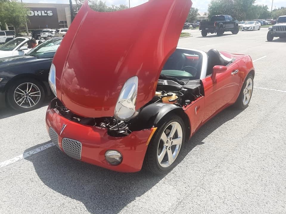 Here’s a 2008 Saturn Sky. The Saturn Sky is a sports car that was made between 2006 and 2009 (model years between 2007 and 2010). The engine of this one is a 2.4 liter LE5 straight-4 that produces 177 horsepower and 173 pound-feet of torque. The transmission of this one is a 6-speed manual. This car does 0-60 mph in 6.9 seconds and has a top speed of 123 mph.