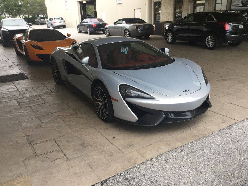This is a 2020 Aston Martin DB11 AMR that I saw at Aston Martin Tampa Bay in January of 2020. The DB11 is the replacement for aging DB9. This car was unveiled at the 2016 Geneva Motor Show, despite the fact that photos of the DB11 were leaked online twice before it was unveiled. The engine of this one is a 5.2 liter twin turbo V12 that produces 630 horsepower and 516 pound-feet of torque. The transmission is an 8-speed automatic. This car does 0-62 mph in 3.7 seconds and has a top speed of 208 mph. This car weighs 3,902 pounds since the chassis is a bonded aluminum spaceframe.