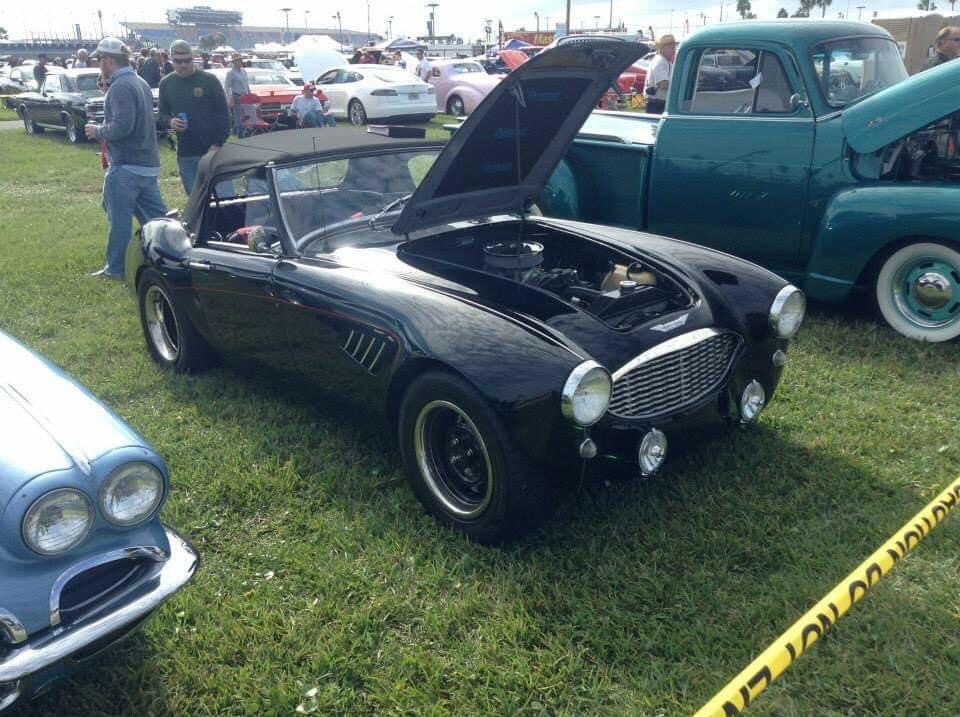 That’s a ’61 Austin-Healey Sprite that was at the 2021 Daytona Turkey Rod Run. The Austin-Healey Sprite is a car that was made between 1958 and 1971. This is from the first generation, which was made between 1958 and 1961. The engine is a 0.9 liter A-Series straight-4 that produces 43 horsepower and 52 pound-feet of torque. The transmission is a 4-speed manual. This car does 0-60 mph in 20.5 seconds and has a top speed of 83 mph.