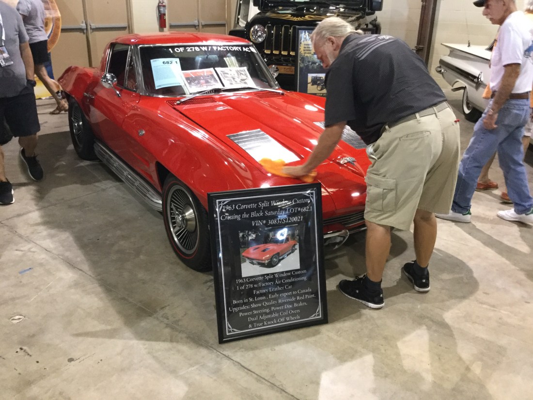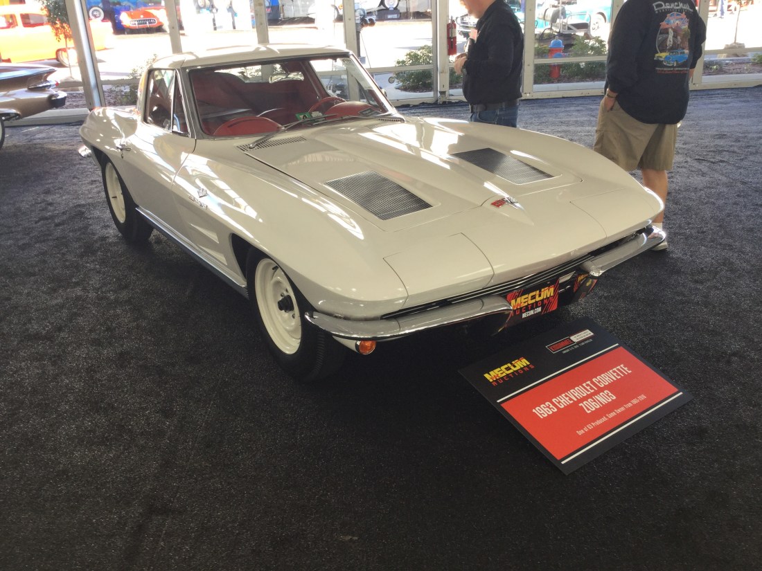 This is a ’63 Corvette Stingray that was at the 2019 Barrett-Jackson Auction in Palm Beach. This is from the C2 generation, which was made between 1962 and 1967 (model years between 1963 and 1967). This one was modified to have a 6.3 Stroker V8 that produces 500 horsepower. The transmission of this one is a 4-speed manual. This Corvette was auctioned off for $110,000.