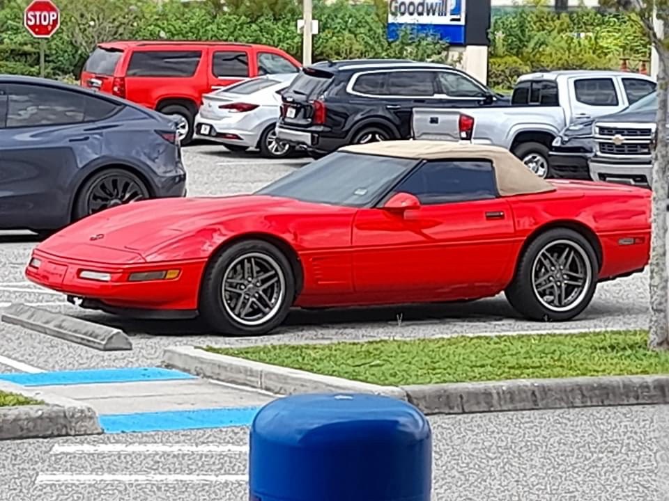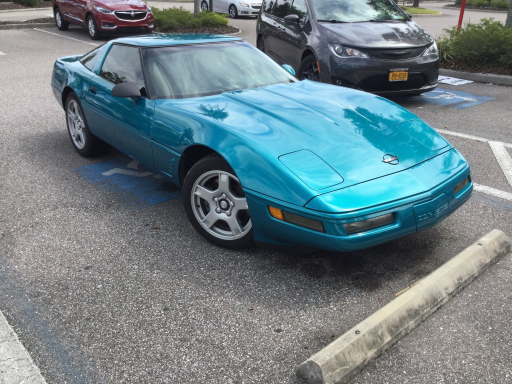 Here’s a ‘96 Corvette. The Corvette is a high performance car that’s been in production since 1953. This is from the C4 generation, which was made between 1983 and 1996 (model years between 1984 and 1996). The engine is a 5.7 liter L83 V8 that produces 240 horsepower and 330 pound-feet of torque. The transmission of this one is a 4-speed automatic. This car does 0-60 mph in 6.5 seconds and has a top speed of 150 mph.