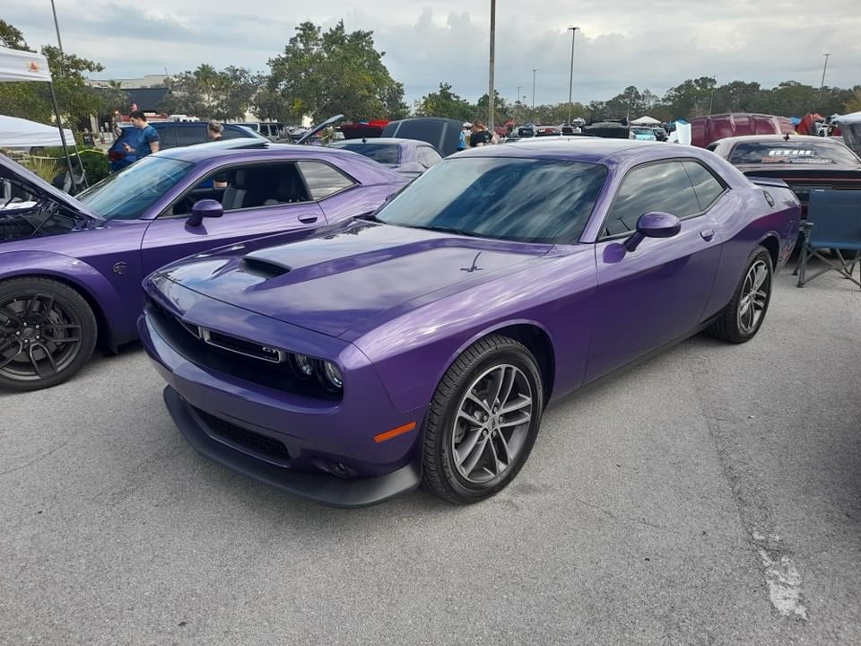 Here’s a 2019 Dodge Challenger GT that was at the 2023 Gulf View Square Mall Car Show. The Dodge Challenger is a muscle car that was originally in production between 1969 and 1974 (model years between 1970 and 1974). This is from the third generation, which has been in production since 2008. The Challenger GT has been in production since 2017, and the concept model was unveiled at the 2015 SEMA Show. The engine is a 3.6 liter Pentastar V6 that produces 305 horsepower and 268 pound-feet of torque. The transmission is an 8-speed Torqueflite automatic. This car does 0-60 mph in 6.3 seconds and has a top speed of 151 mph.