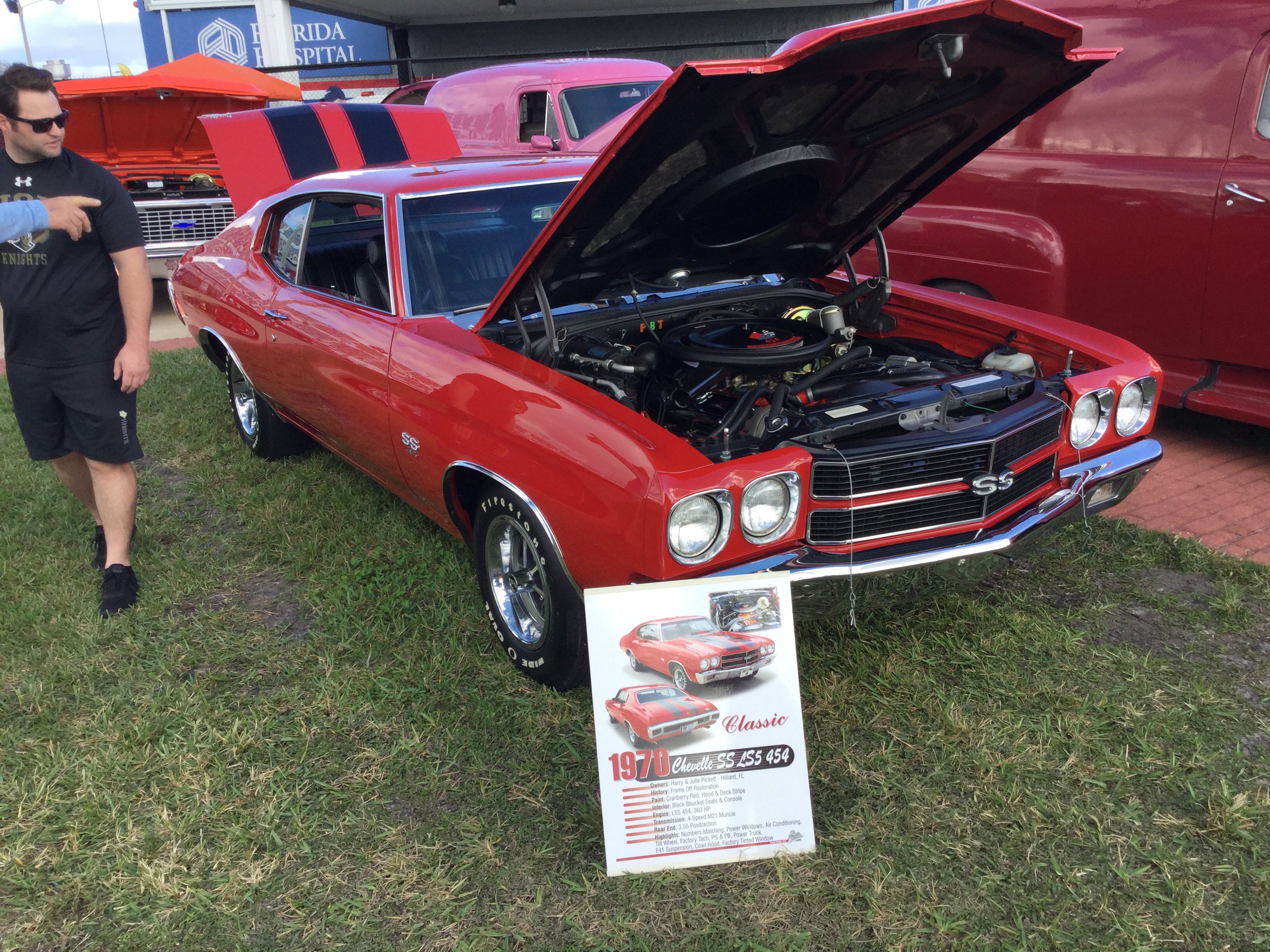 This here is a ’70 Chevelle SS that was at the 2020 Shops at Wiregrass Car & Truck Show. The Chevy Chevelle is a mid-size car that was made between 1963 and 1977 (model years between 1964 and 1977). This is from the second generation, which was made between 1967 and 1972 (model years between 1968 and 1972). The engine of this one is a 6.5 liter Big Block V8 that produces 350 horsepower and 415 pound-feet of torque. The transmission of this one is a 4-speed manual. This car does 0-60 mph in 6 seconds and has a top speed of 132 mph.