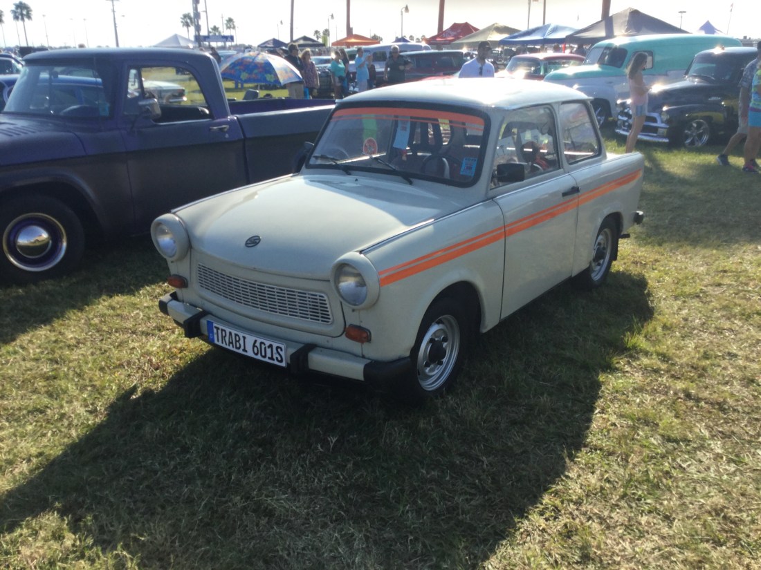 This is a ’64 Volkswagen Karmann Ghia that was at the 2019 Daytona Turkey Rod Run. The Karmann Ghia was a car made German coach builder Karmann and Italian designer Ghia, which is where Volkswagen got the name Karmann Ghia. The car was made from 1955 to 1974, but the first prototype was made in 1953. Originally, Volkswagen was only going to make just 4,000 of the Karmann Ghia, but they sold out pretty quickly. Because of this, Volkswagen decided to mass produce the car. A total of 445,238 of these were made in Germany between 1955 and 1974. There are also 41,689 that were made in Brazil from 1962 to 1974. The engine of this one is a 1.2 liter flat-4 that produces 40 horsepower and 65 pound-feet of torque. The transmission is a 4-speed manual. The top speed is 75 mph.